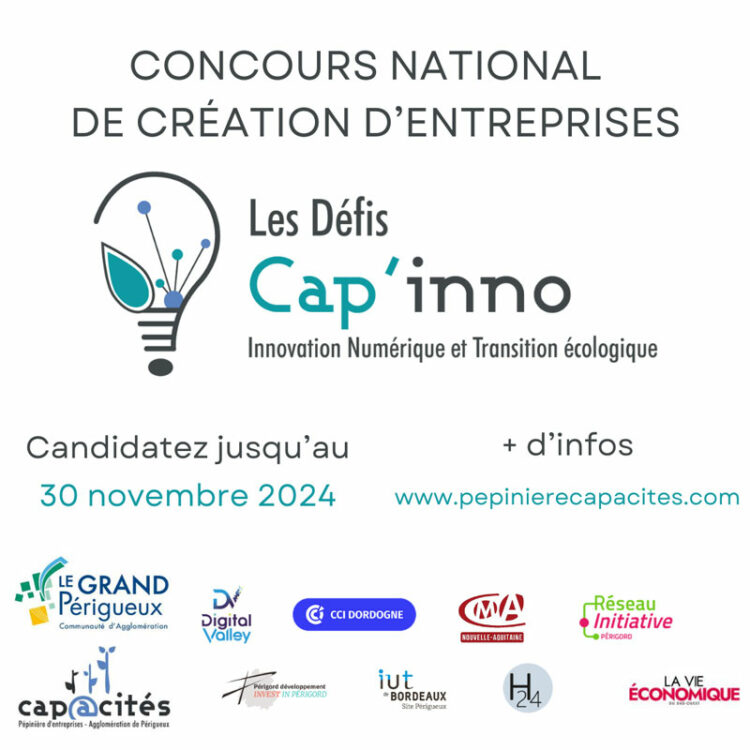La pépinières d’entreprise du Grand Périgueux organise un concours national de création d’entreprises, 𝐥𝐞𝐬 𝐃é𝐟𝐢𝐬 𝐂𝐚𝐩’𝐢𝐧𝐧𝐨, dont nous sommes partenaire.