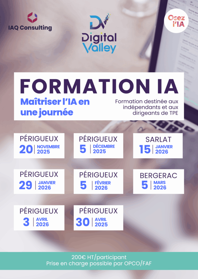 Digital Valley vous propose une journée de formation inter-entreprises dédiée à l’intelligence artificielle pour les pour collaborateurs et dirigeants de TPE.